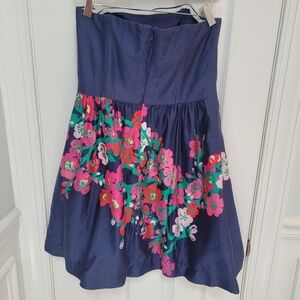 gorgeous deep navy blue with cascade of bright pink and red flowers