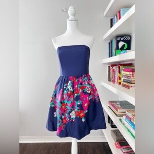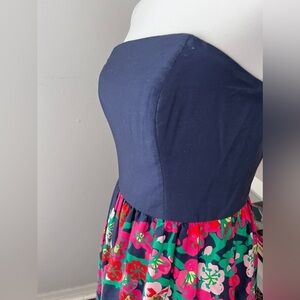 Lilly Pulitzer Womens Size 8 Navy Blue Strapless Floral Lined Dress