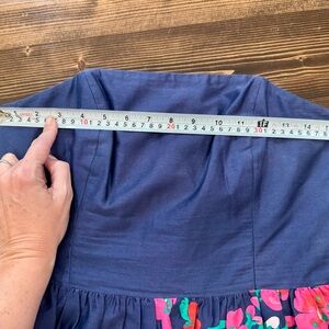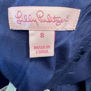 Chic navy dress by Lilly Pulitzer. Features subtle pink accents. Ideal for stylish outings. Corset top and vibrant colors. Sooo pretty!