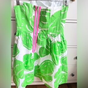 Lilly Pulitzer Lottie Stinger Print Strapless Dress Green, White, and Gold