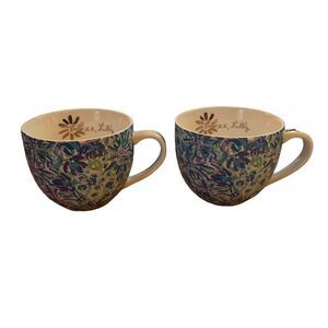 Lilly Pulitzer Love Lion XX Blue, Purple & White Floral Ceramic Cups - Set of 2