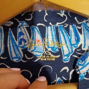 Lilly Pulitzer Dev Low Tide Printed Top Size: X-Small Color: Low Tide Navy Sails and Stripes This nautical Dev Low Tide top from Lilly Pulitizer boasts a bright sailboat motif. Cut with a split V-neck, this breezy style flows with a relaxed fit. Details: * Relaxed fit * Pull-on style * Sleeveless with split V-neck * Vibrant printed design * Straight hemline Size & Fit: 24.5" from shoulder to hem