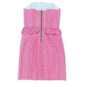 Lilly Pulitzer Lowe Dress Fiesta Pink Pretty Gingham Strapless Peplum Size 0