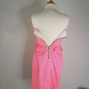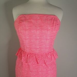 Lilly Pulitzer Lowe Fiesta Pink Pretty Gingham Strapless Peplum Dress Size 4