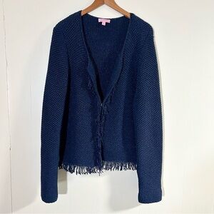 Lilly Pulitzer Luanna Fringe Cardigan in Navy Blue sz XL