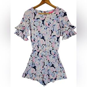 Lilly Pulitzer Lula Romper High Tide Navy Short Ruffle Sleeve Its For Shore