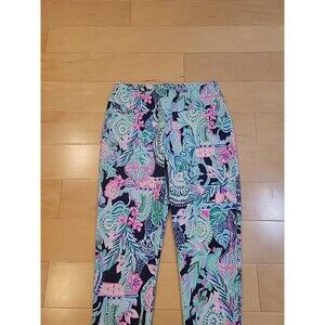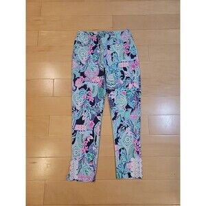 Lilly Pulitzer Luxletic Corso Golf Pant Looking Sharp Blue Floral Print 6 Resort