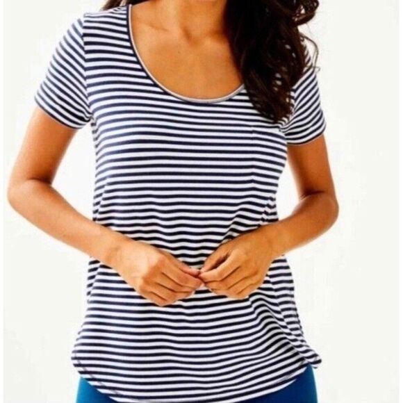 Lilly Pulitzer Luxletic Kerah Lounge Tee Women’s Size XS Blue White Striped