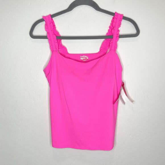 New with tags Lilly Pulitzer Luxletic Lucine Bra Tank Top Womens XL Pink Isle Bright UPF 50+