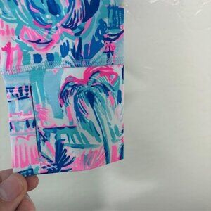 Lilly Pulitzer Luxletic Shirt Womens Medium Pink Blue Palm Print Long Sleeve