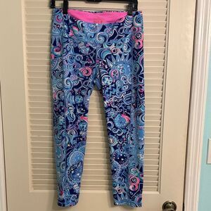 Lilly Pulitzer Luxletic Weekender Midi Leggings Cosmic Kismet Blue Large RARE