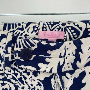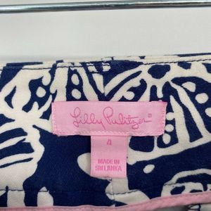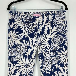 Lilly Pulitzer Luxury Capri Pant Size 4 Low Rise Seashell Ocean Print Navy White