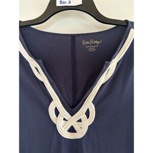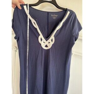 Lilly Pulitzer M Brewster Embroidered Dress Pima Cotton Short Sleeve Navy Blue