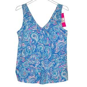 Lilly Pulitzer M NEW Gigi Tank Zanzibar Blue Fish Kiss Tropical Vacation Coastal