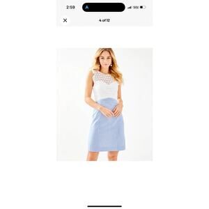 Lilly Pulitzer MAYA SHIFT DRESS Coastal Blue Seersucker White EYELET SZ 4