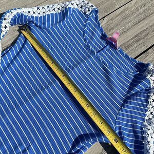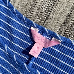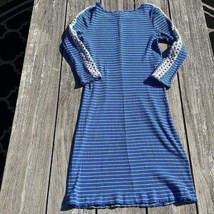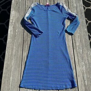 Lilly Pulitzer MEDIUM Marlowe Dress Beckon Blue White Breeze Stripe 3/4 Sleeve