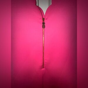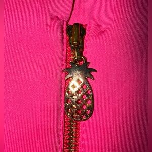 • Features: Scalloped neckline & hem, exposed gold pineapple zipper, pullover style, lined zipper edge with printed fabric detail