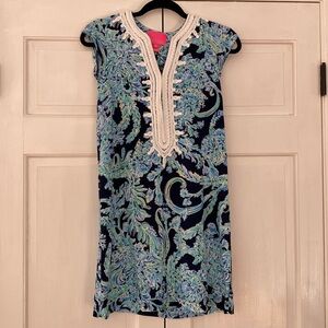 Lilly Pulitzer Madia Tunic Dress High Tide Navy Scuba Doo White Green Size XXS