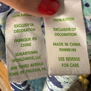 This stunning sundress by Lilly Pulitzer showcases a captivating blue and black floral pattern, perfect for resort wear. The sleeveless design features a V-neckline and a bib collar, adding a touch of elegance to its mini silhouette. Ideal for sunny getaways, this dress combines style and comfort effortlessly.