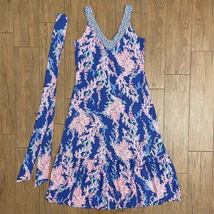 Lilly Pulitzer Madsen Midi Dress in Borealis Blue/Swim on Over- Size XL