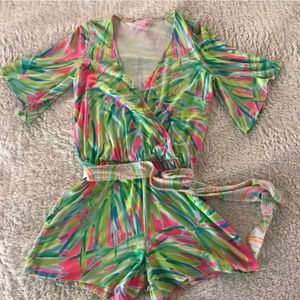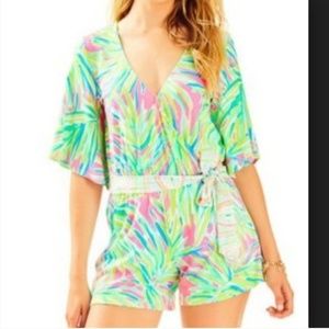 NWOT Madylin Romper! Print is Tiki Pink Royal Lime. Only worn once and is in factory-fresh condition.