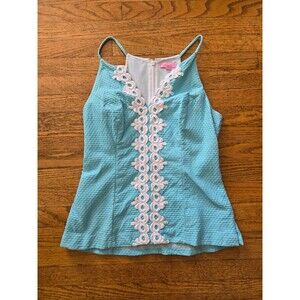 Lilly Pulitzer Magnolia Top Breakwater Blue Lace Cotton Size 4 Halter