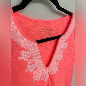 Lilly Pulitzer Maisy Mini Dress Neon Coral Reef Sz XXS Slub Knit Tee 15