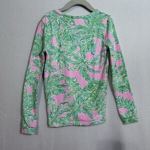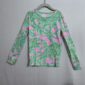 Lilly Pulitzer Mandevilla Baby Pink Sands Paradise Long Sleeve Sammy Pajama Set Girl's 8 Snug Fitting Stretch Classic Preppy Palm Leaves Colorful Resort Vacation Cruise Hawaii