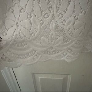 Geometric lace with gorgeous scalloped edges heightens the resort-ready charm of this airy little white dress