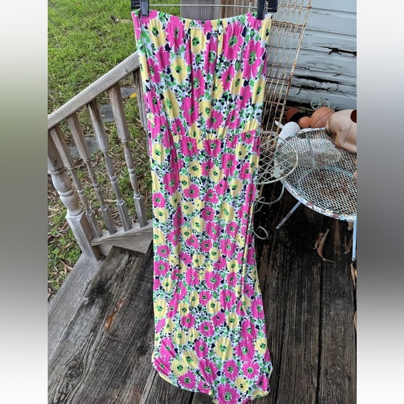 Lilly Pulitzer Marlisa Maxi Dress L Strapless Doodlebug Daisy Floral Pink Green