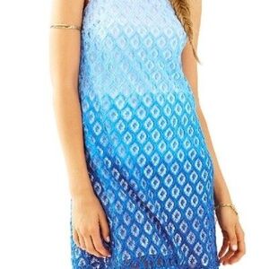 Lilly Pulitzer Marquette Ombre Shift Dress Blue White Lace Tassels