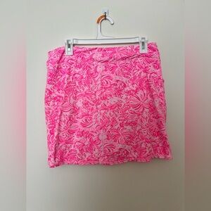 It has a stretchy elastic waist and two front side pockets with pink shorts underneath.