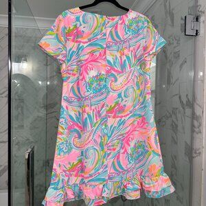 Lilly Pulitzer Masey Romper in the beautiful Carnivale Coral print. Women’s size 14. Brand new with tags.