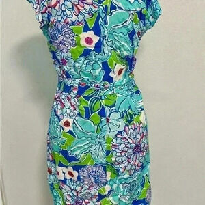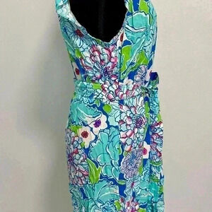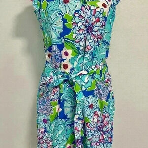 Lilly Pulitzer Maya Worth Blue May Flowers Floral Print Tie Waist Dress Size M