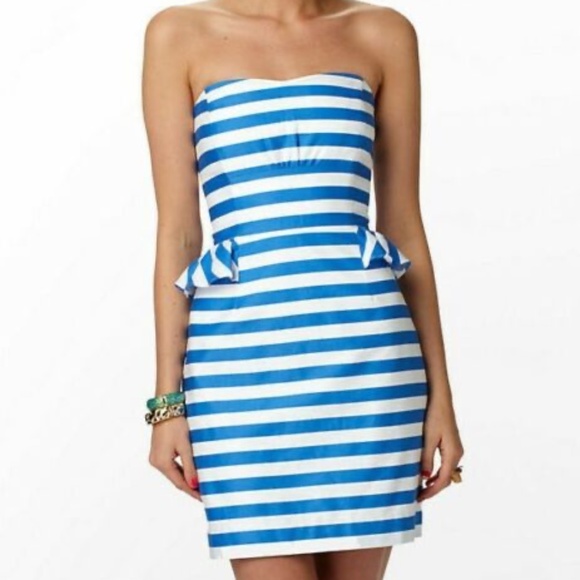 Sleek striping creates ultra-feminine shape on this Lilly Pulitzer strapless dress, offering a nautical look with a distinctly stylish edge.