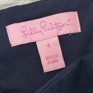Adorable Lilly Pulitzer Mayfield Seeing Stars Dress with Starfish and Seashell details in Navy. In lovely pre-owned condition! Nautical themed dress perfect for beach wedding, honeymoon, cruise, resort wear, formal, cocktail party, or summer event. Features: A-line Mayfield Seeing Stars style Navy color with embroidered starfish and beaded gold shells Corset lining Back zipper closure Hits above the knee Size: 4 100% cotton approximate measurements: length (from armpit to hem): 26 inches armpit to armpit 16 inches waist: 15 inches