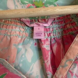Lilly Pulitzer Medium Silk Sleeveless Blouse Top V Neck Tropical Beach Vacation