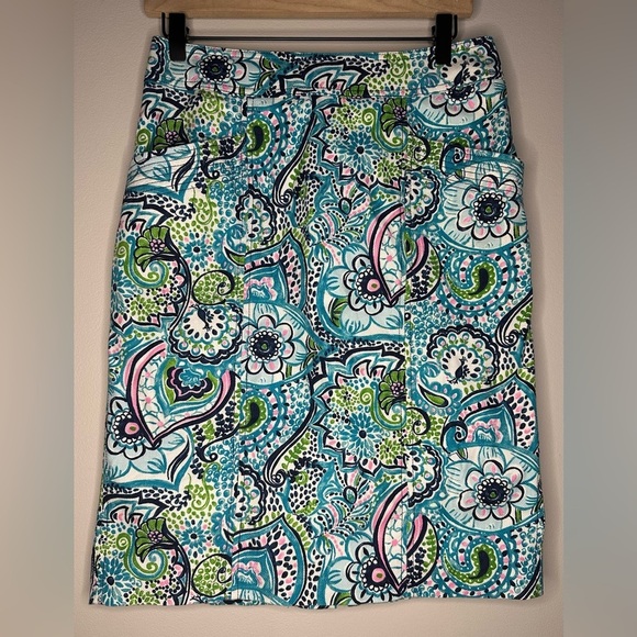 Lilly Pulitzer Melanie Pencil Knee-Length Skirt Blue Floral Peacock Women’s 6