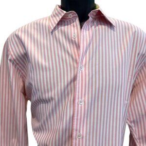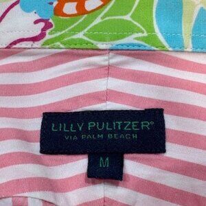 Lilly Pulitzer Men’s Striped Pink & White Button-Down Shirt – Size Medium