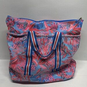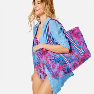 Lilly Pulitzer Mercato Tote Bag Shoulder Strapas Floral Ruby Red Wild Times Blue