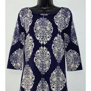 Lilly Pulitzer Merino Wool Sweater Size XS Blue White Pattern Damask Tunic