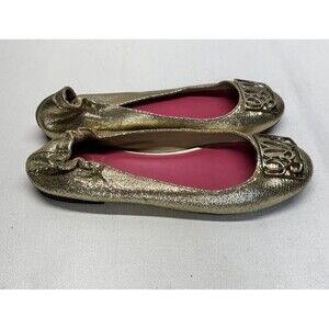 Lilly Pulitzer Metallic Gold Logo Classic Leather Ballet Flats Sz. 7