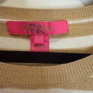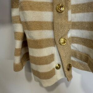 Lilly Pulitzer Metallic Gold & White Striped Sweater — Size Small