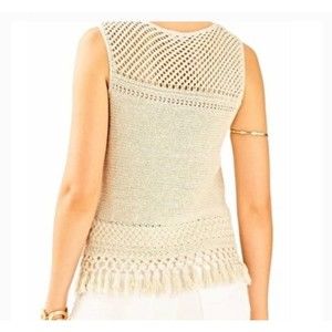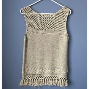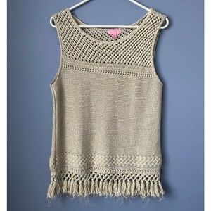 Lilly Pulitzer Metallic Knit Sweater Tank Top Tassels Fringe Shimmer Sz M