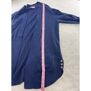 Lilly Pulitzer Micaila Cardigan Sweater Navy Metallic Open Longline Tulip Hem