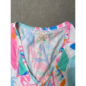 Lilly Pulitzer Michele V Neck Short Sleeve Shirt in Out to Sea Print, X-Small