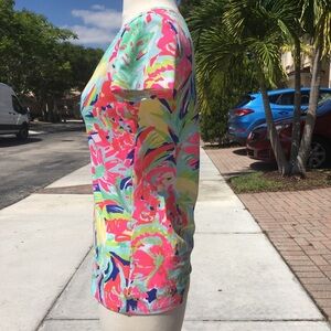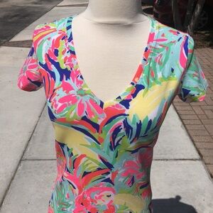 Lilly Pulitzer Michele V Neck Tee Casa Banana Size Extra Small
