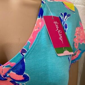 Lilly Pulitzer Michelle V-Neck top schorely blue and pink