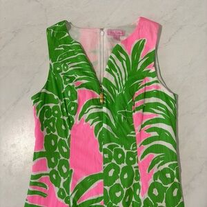 Lilly Pulitzer Mila Pineapple Print Shift Dress Size 0 Pink Green Preppy Travel