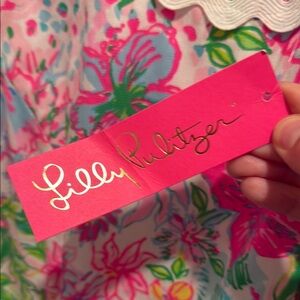 Bright floral mini dress by Lilly Pulitzer. Features pink, green, and blue hues. Sleeveless design with scalloped trim.